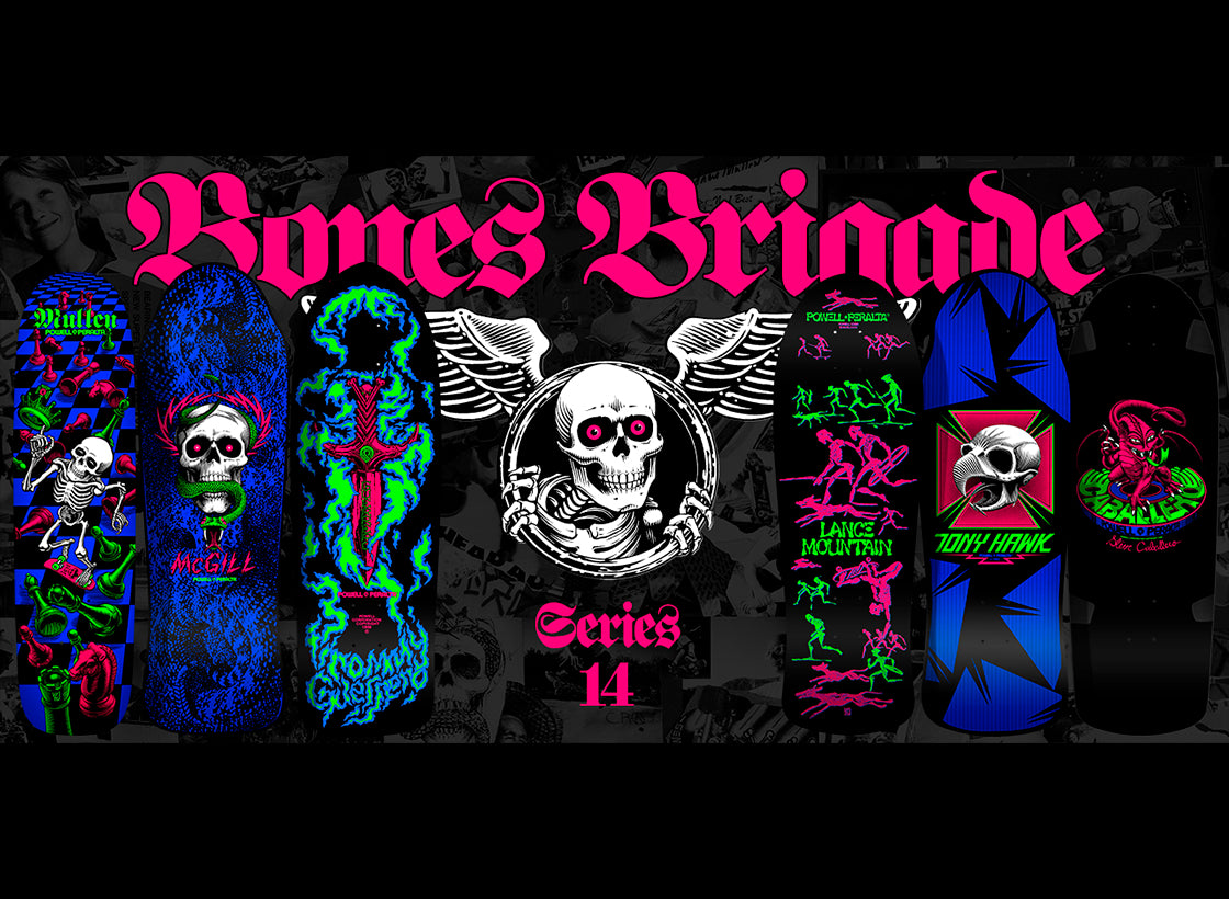 The wait is over. Get your hands on the Bones Brigade Series 14 decks now. These Re-Issue decks are shaped and pressed like the original. Quantities are limited!