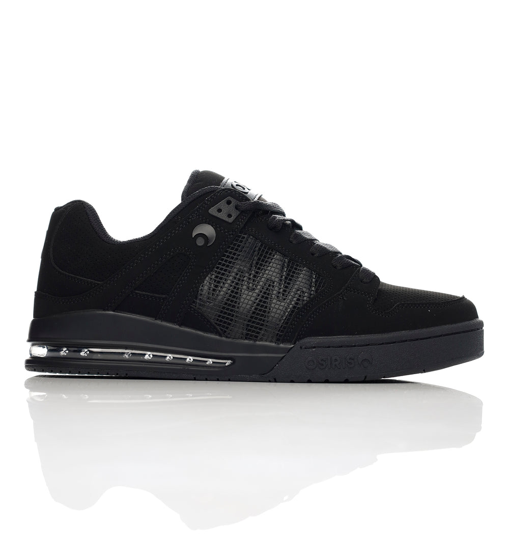 The Osiris Pixel is geared towards performance. With this action based shoe you get a synthetic nubuck upper, multi layered toe and ollie area, bottom and top protective lace loops, wrap around airbag system, a 3/4 cupsole construction with PU midsole and airbag for maximum support and comfort, a soft molded PU insole with full latex covering for added durability and improved fit, a abrasion resistant rubber outsole for wear, durability, and ideal performance, a thick synthetic tongue and collar, reinforced stitching at toecap and ollie area, and a padded upper. Osiris detailing throughout. Available in black with red detail.