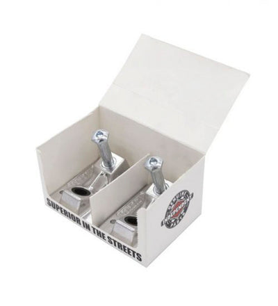Upgrade any pair of Independent trucks with Inverted Kingpin and Baseplate Set! These kingpins sit lower than the original, reducing friction on smith/feeble grinds. Innovative shaft nut ensures tight fit in the baseplate and does not develop wiggle over time.