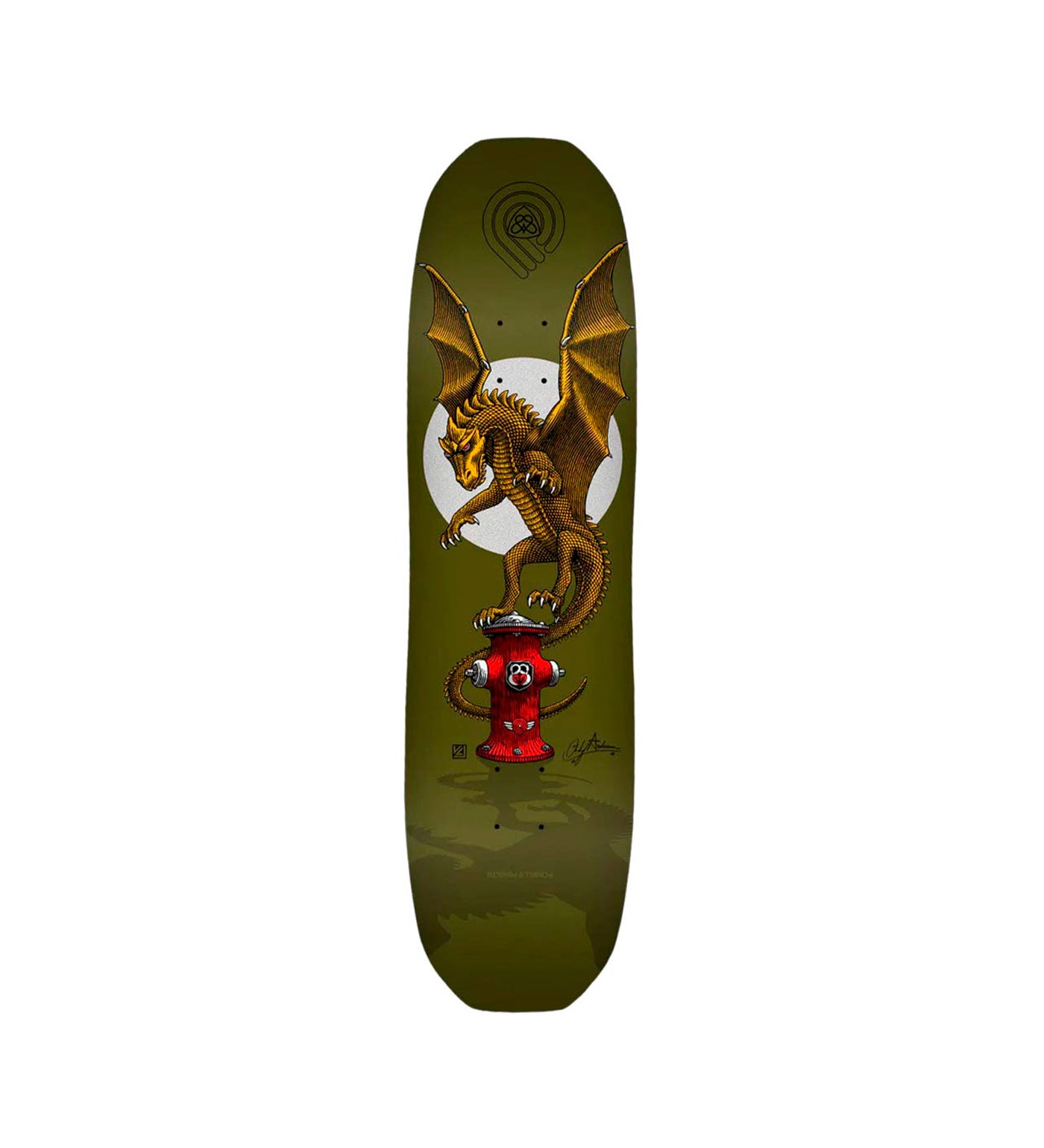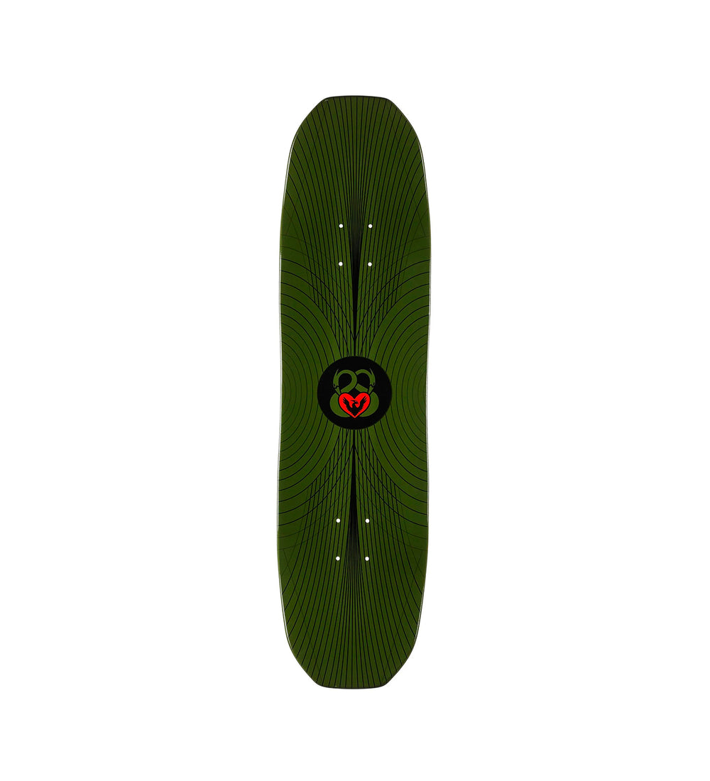 While the Vajra shape was a challenge to develop, this one came easily to Andy. Reminiscent of the original Heron shape but smaller and symmetrical, it measures 8.25" at the waist, just under 8.5" at the widest, and has a 14.25" wheelbase. The square edge and slightly curved nose and tail deliver solid, stable pop, while the K26 concave and inner cuts create a front-foot pocket that makes Tre Flips and Varial Heelflips easier to flick. With its streamlined shape, pop, and responsive feel, the Hydrant shape is solid gold.