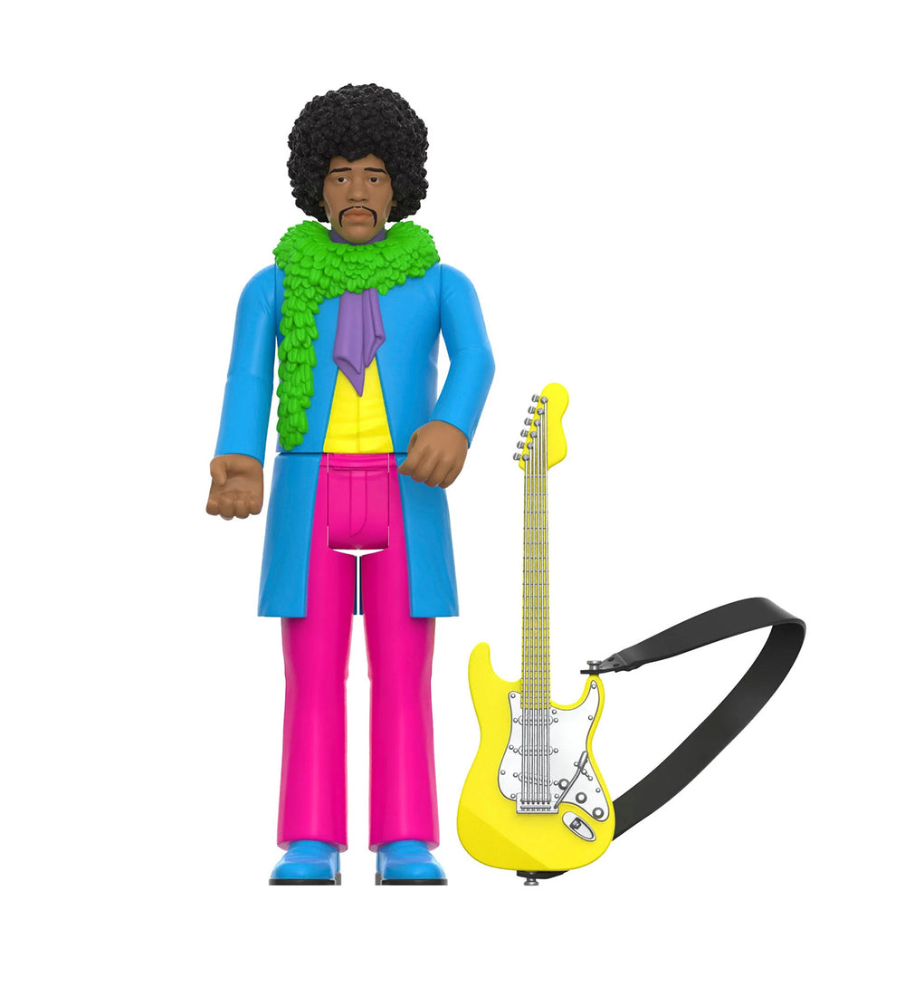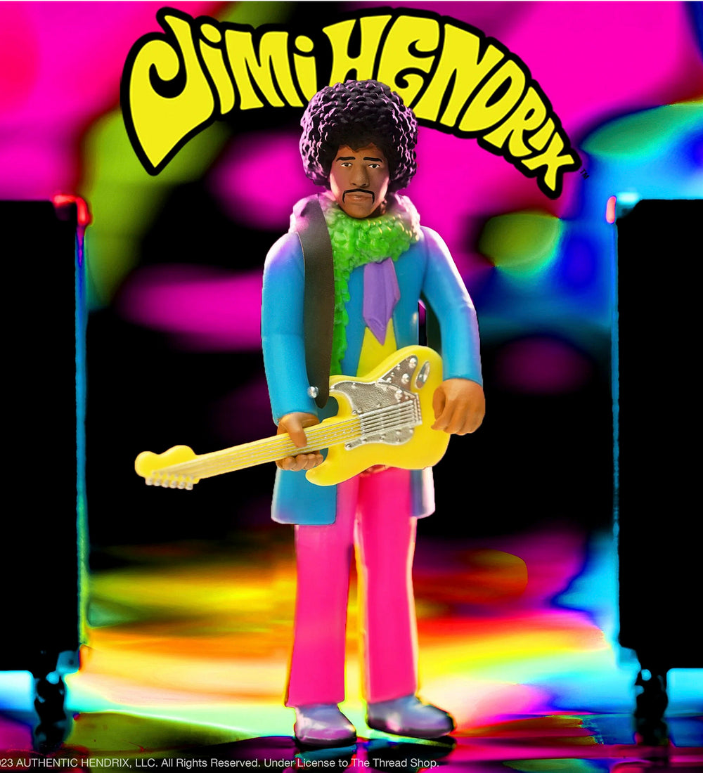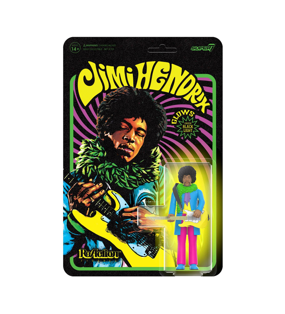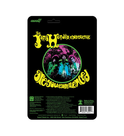 You may think you know ReAction Figures, but allow legendary rock and roll guitarist JIMI HENDRIX™ to introduce you to an entirely different action figure experience! This 3.75” scale, blacklight JIMI HENDRIX™ ReAction Figure is inspired by the cover art for THE JIMI HENDRIX EXPERIENCE™ debut studio album Are You Experienced™, featuring brightly-colored paint that fluoresces when exposed to a blacklight, comes packaged on a flocked cardback, and includes an electric guitar accessory. Give your collection a groovy upgrade with the new blacklight JIMI HENDRIX™ ReAction Figure!