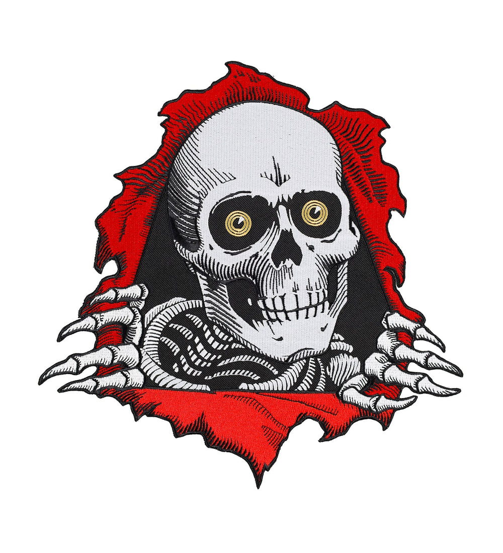 Details: • Powell Peralta Ripper embroidered patch • 9.975” X 10" • iron-on backing Application • Denim and cotton material provide the best base. Be careful of polyester. • Put the item on a hard surface, like an ironing board. Iron it to create a nice, flat surface. • Place the patch where you want it to be. • Heat up the iron to it's hottest setting. • Place a thin cloth over the patch. (This will protect the patch and any surrounding material). • Place the iron over the patch and press down hard as possible for 15-30 seconds. • Remove the iron and let patch cool. • Check the patch by gently rubbing at the edge, trying to lift it. If it lifts, replace the thin material and iron again for 10- 15 seconds. • To ensure a secure patch you can also sew around the edges.